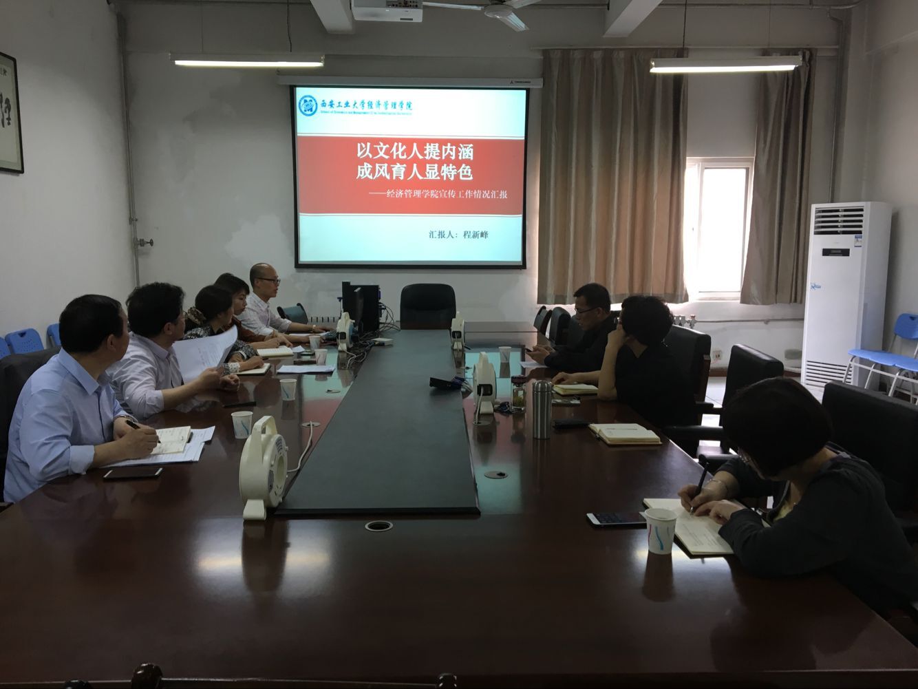 3月30日下午2:00 校党委宣传部“走基层、属典型、展风采” 宣传思想文化工作专题调研组在校党委副书记于孟晨的带领下,走进经管学院开展专题调研活动。参加活动的有党委宣传部部长任慧英、党委宣传部副部长骞军荣、...