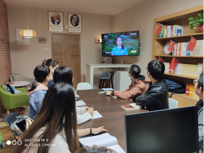 活动一开始,支部书记简单叙述了黄文秀同志的事迹,并对她的事迹谈了自己的感受。紧接着,为了能够让支部成员们更加深刻体会黄文秀同志的力量,牟老师为大家播放了《时代楷模》中黄文秀同志事迹的节选片段。观看完视频之后,大家的内心都被深深触动,分别就自己的心得体会进行了交流和分享。