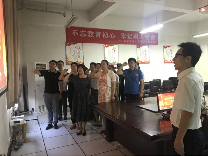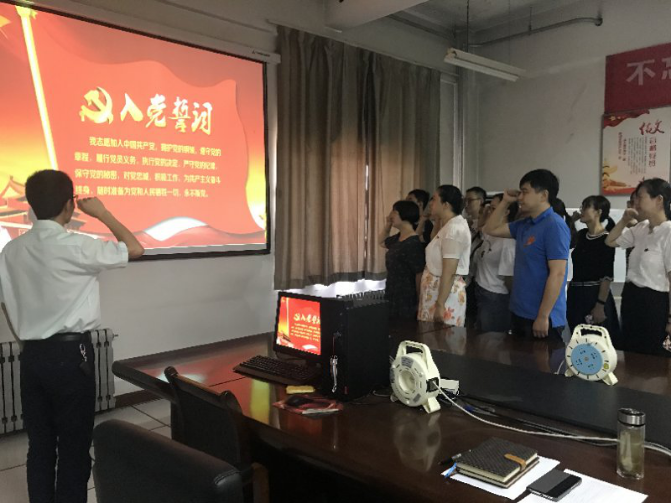 7月1日上午在教五楼520学术交流中,yl23455永利集团党委组织了“拾初心”重温入党誓词活动。在院党委副书记姬洪波同志的带领下,yl23455永利集团党委委员及办公室全体党员,举起右手,面向党旗庄严宣誓:“我志愿加入中国共产党,拥护党的纲领,遵守党的章程……”一句句铿锵有力的神圣誓言涤荡灵魂,大家的心灵再次受到震撼和洗礼。