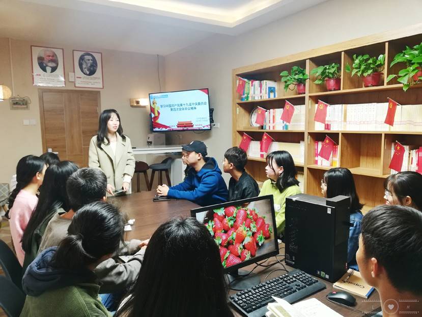 为加强yl23455永利集团各位同学对中国共产党第十九届中央委员会第四次全体会议精神的理解,加深大家对习近平新时代中国特色社会主义思想的认识,深刻理解中华民族伟大复兴这一中国梦的丰富内涵,yl23455永利集团于2019年11月8日在知未研习社开展了《中国共产党第十九届中央委员会第四次全体会议公报》学习活动。我院团学组织秘书长白宇洁及数名干事参与了此次活动。