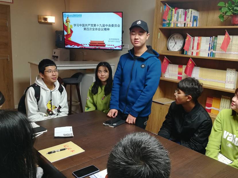 活动伊始,团学组织秘书长白宇洁简明扼要地总结此次活动的意义,同时强调活动主题:全面贯彻党的十九大和十九届二中、三中全会精神。紧接着,各位同学认真学习《中国共产党第十九届中央委员会第四次全体会议》,共同观看相关节目。会议中习近平总书记作出重要讲话,全会听取和讨论了习近平受中央政治局委托作的工作报告,充分肯定党的十九届三中全会以来中央政治局的工作。全会认为,中国共产党自成立以来,团结带领人民,坚持把马克思主义基本原理同中国具体实际相结合的做法是十分正确的,提出中国特色社会主义制度的重要性,并强调我国国家制度和国家治理体系具有多方面的显著优势。最后,各位同学对此展开讨论,抒发自己观后感想。大家统一认为:在今后的工作中应严格按照制度履行职责、行使权力、开展工作,契合习近平总书记讲话内容,提高推进“五位一体”总布局和“四个全面”战略布局等各项工作能力和水平。