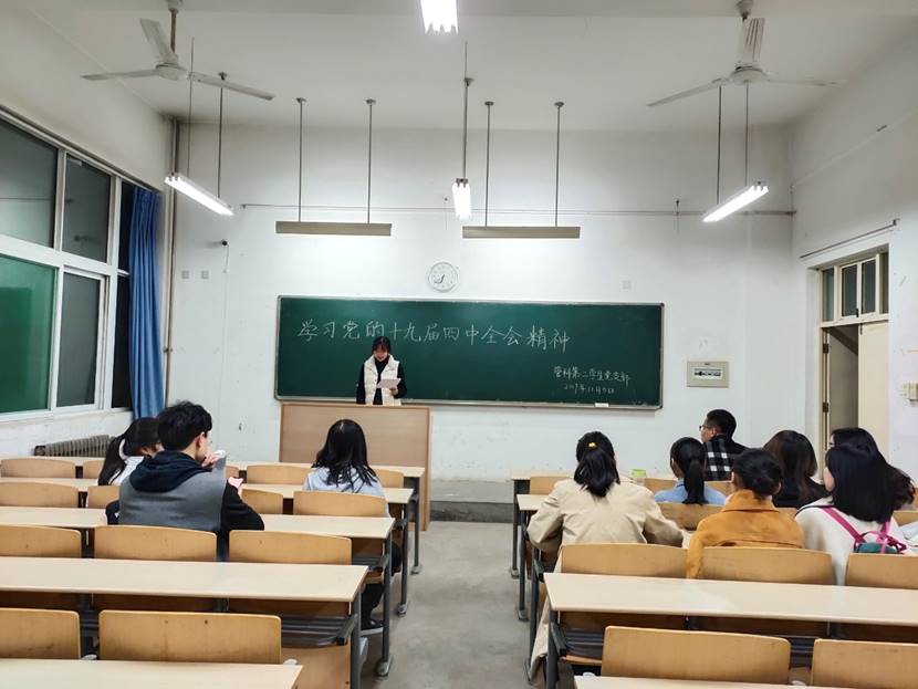 侯剑波老师在会上强调:“党的十九届四中全会是一次具有开2019年11月5日,yl23455永利集团管科第二学生党支部在教3-108组织支部全体党员深入学习党的十九届四中全会精神,该会议由支部组织委员沈欣怡主持,支部全体党员到场参加。