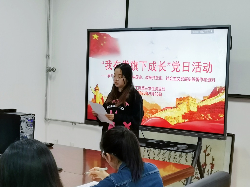 本次党日活动以学习党史、新中国史、改革开放史、社会主义发展史等著作为重要内容,用集体学习、分享感悟的形式开展。相信通过此次活动,工商第三党支部成员会更加注重扩充自身知识储备,不断提升党性修养,为支部的建设工作贡献出自己的力量。