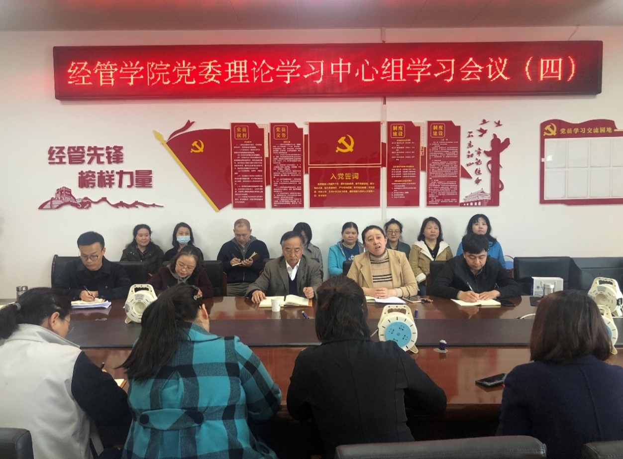 学院领导班子、党委理论学习中心组成员、党支部书记及经济学科教工支部党员参加了学习会议。