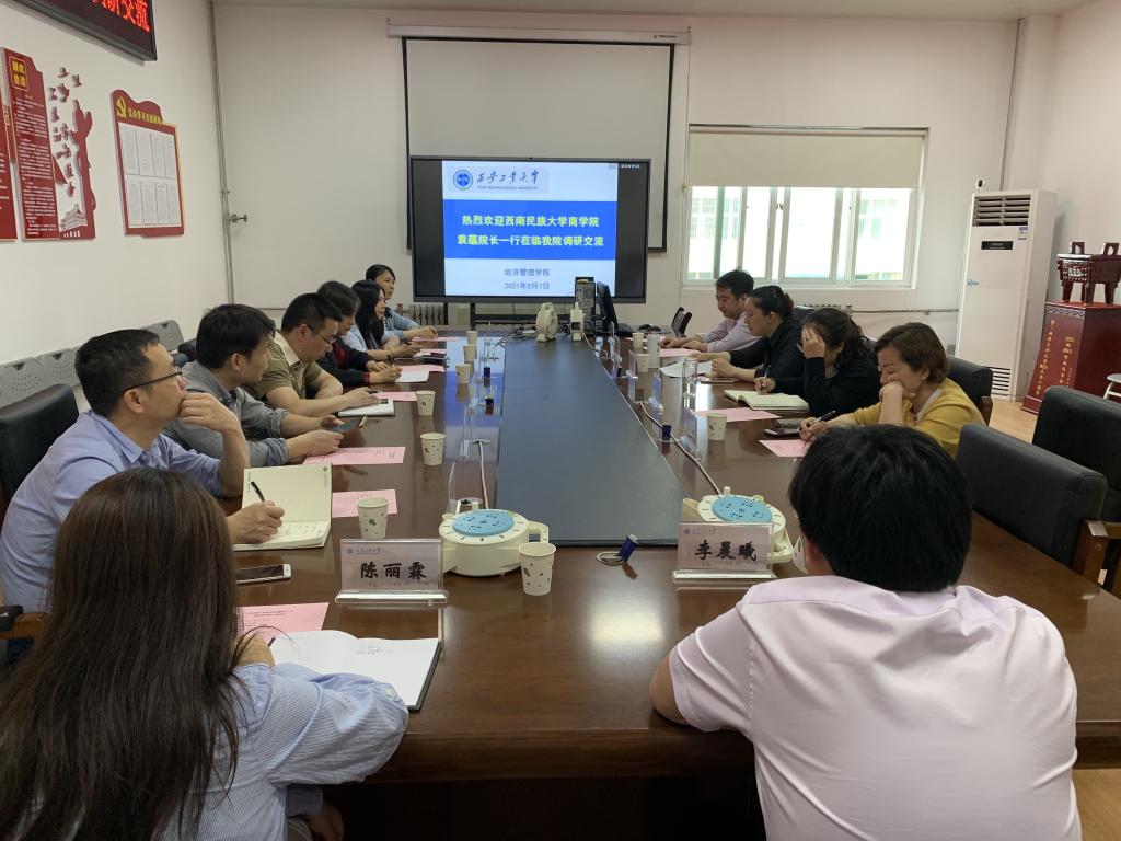 5月7日下午,西南民族大学商学院一行8人来我院开展党史学习教育和一流专业建设交流。座谈会由我院副院长向海燕主持。