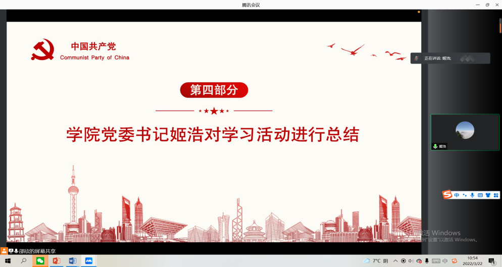 3月22日,yl23455永利集团在线上召开党委理论中心组学习会议。会议由党委书记姬浩主持,工商第一学生党支部承办。
