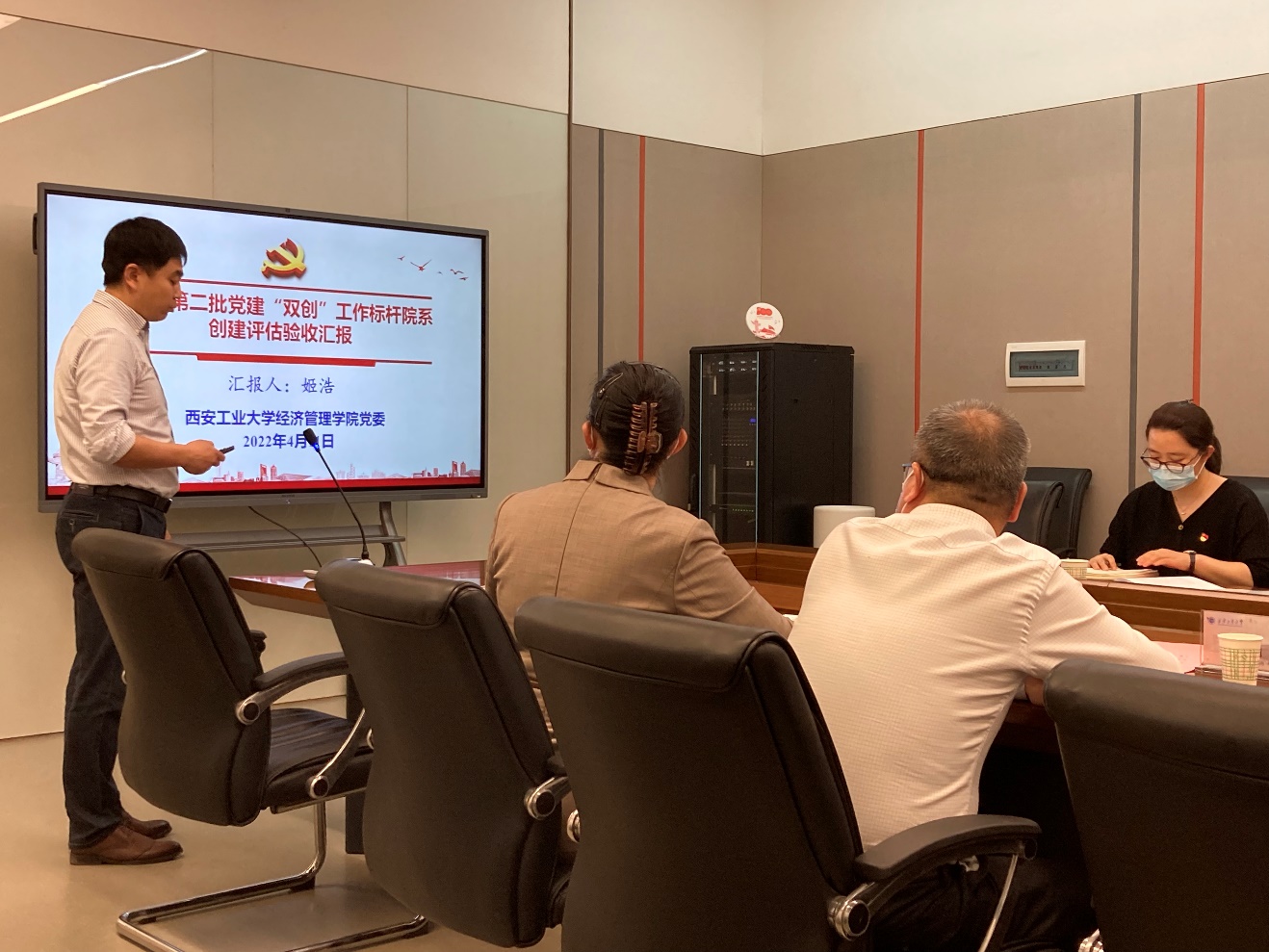 会上,刘卫国对评估验收组一行的到来表示欢迎,并从构建培育体系、强化指导督促、促进业务融合、发挥示范作用和存在问题及改进方向等方面汇报了学校党建“双创”工作情况。