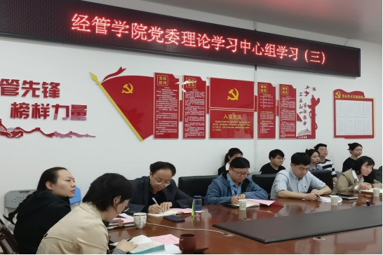 经管学院党委理论学习中心组全体成员、各党支部书记、工商第一学生党支部全体党员参与学习。