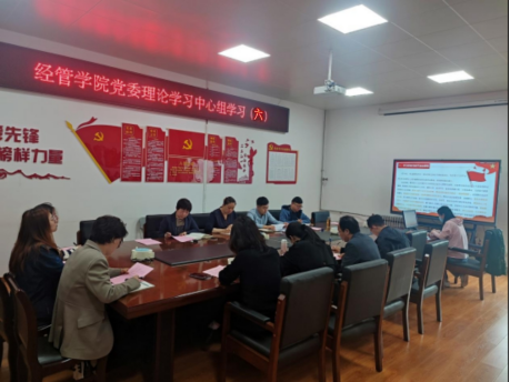 经管学院党委理论学习中心组全体成员、各党支部书记、工商第三学生党支部全体党员参与学习。