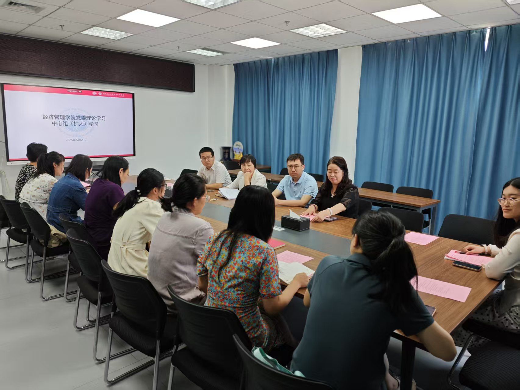 学院党委理论学习中心组全体成员、各党支部书记及工商教工第一支部党员代表参加会议。