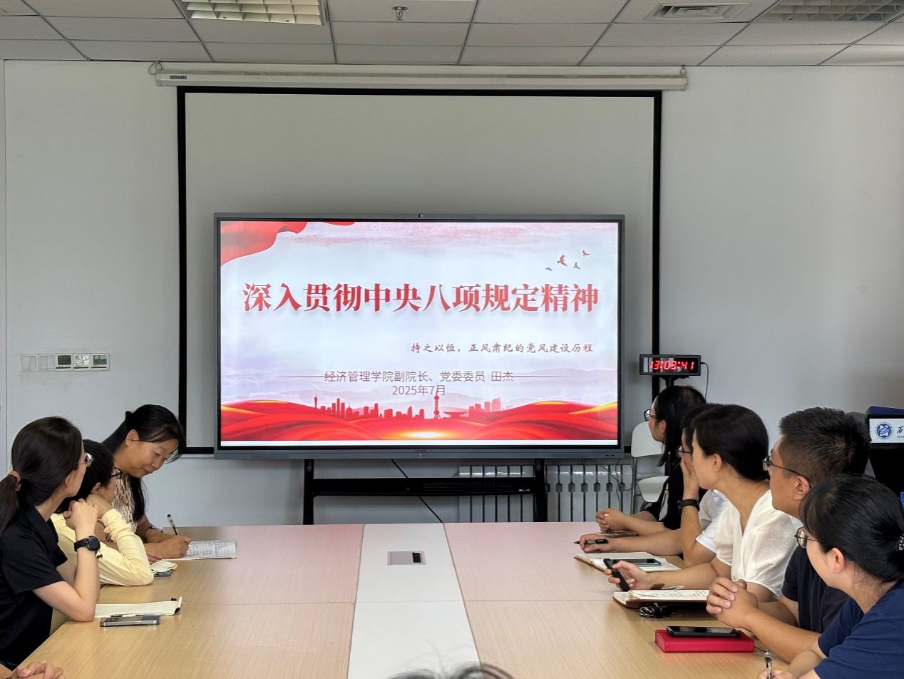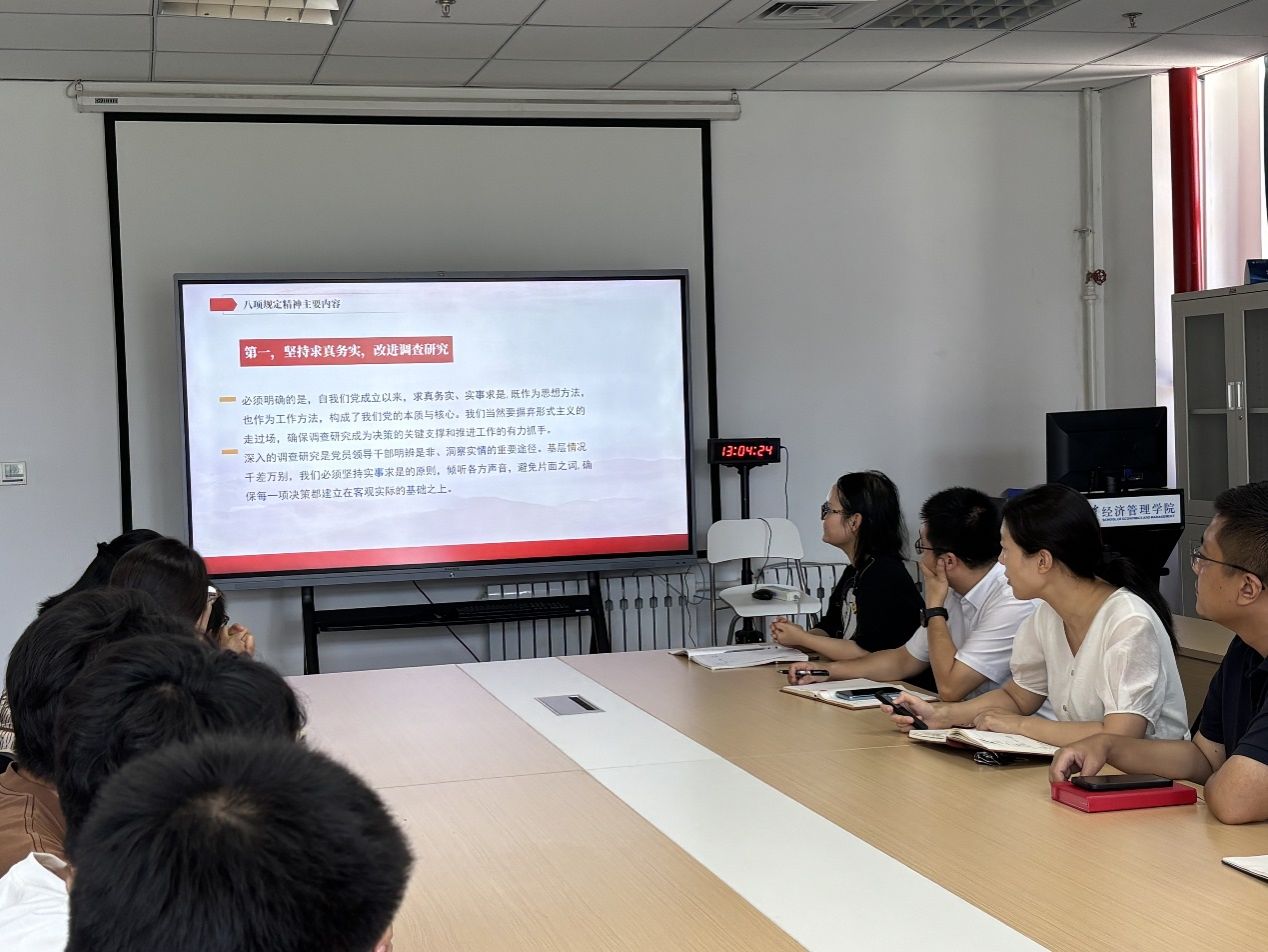 会议指出,中央八项规定是新时代加强作风建设的重要抓手,是推进全面从严治党的“铁规矩”“硬杠杠”。会议强调,全体党员要提高政治站位,严守纪律规矩,自觉把落实中央八项规定精神作为日常行为准则,融入教育教学、管理服务等各项工作中,持续推动学院党建工作高质量发展。