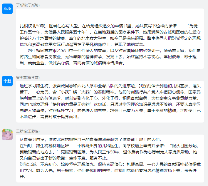 为充分发挥先进典型的示范引领作用,培育和践行社会主义核心价值观,奋力谱写陕西新时代追赶超越新篇章,凝聚强大力量,工商第二学生党支部于3月10日在教5-502开展了向“三秦楷模”路生梅、张雷威同志和西北大学中亚考古队学习活动。支部全体同志参加了此次活动。