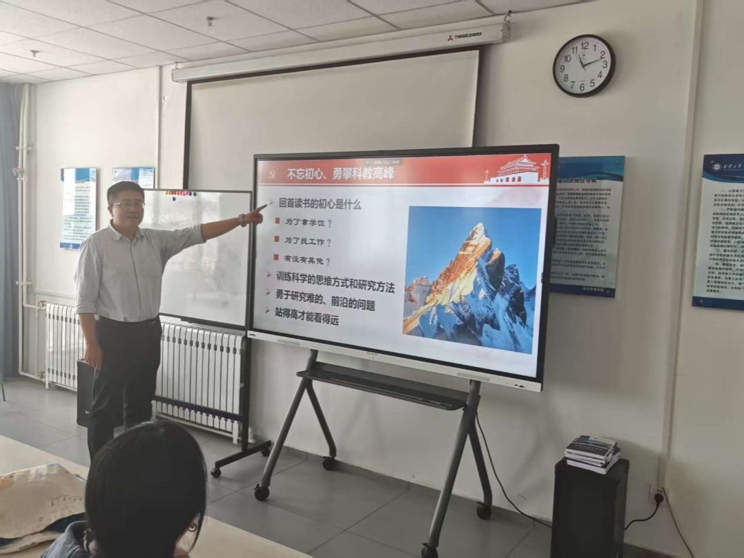 讲座伊始,张萌副教授以“不忘初心、勇攀科教高峰”为切入,引导学生回顾科研初心,探讨读研读博的真正意义。他强调,作为新时代青年,应以国家重大战略需求为导向,主动担当、攻坚克难,把个人发展融入国家发展大局。