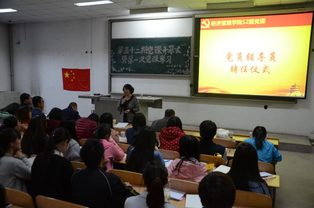 为了进一步提高同学们的党政素质,加深同学们对党的精神的认识与理解,激发同学们爱国,爱党的热情,我院于3月28日晚上6点20分在教3―115举行了经管学院第五十二期党课培训开学典礼与第一次的党课培训。出席此次典礼的有党委书记曲敏、党委副书记程新峰,团委书记冯川川,以及各个学生支部书记。第五十二期全体党课学员及党员辅导员参加此次会议。