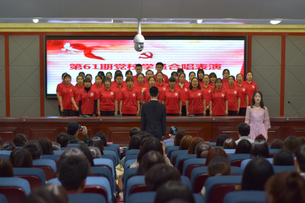 活动在全体师生庄严肃穆的国歌声拉开帷幕。在全体成员观看第61期党校回顾视频之后,由优秀学院代表的合唱歌曲《没有共产党就没有新中国》,让本期学员们更深入了解党课学习的内容及重要性,增强了学员对参与党课的信念和信心。