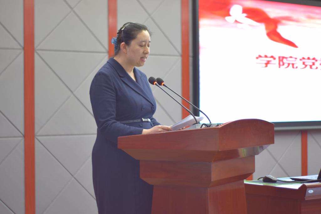 学院党委书记苏兵老师讲话,她向在座学员提出三点要求,不忘初心,牢记使命,结合“四史”学习,充分了解党的历史和文化;明确青年使命,勇担时代大任,将信仰、信念、信心的力量转化为学习奋进的力量;不断学习,完善自我,争取早日成为一名优秀的共产党员。