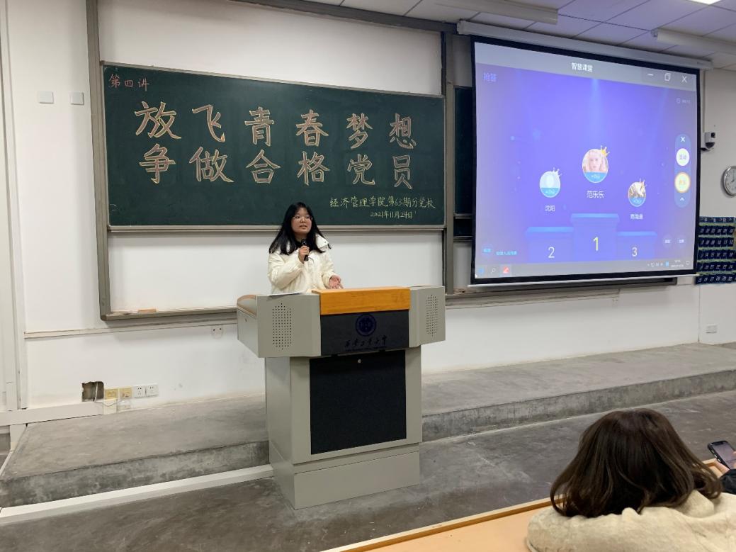 通过本次党课学习,学员们深刻的了解到了正确入党动机的重要性,以及入党应该具备的的基本条件等相关理论。并且通过热烈的讨论后,学员代表范乐乐发言“入党是一件严谨而伟大的事情,我们应该从思想上、行动上加强入党动机,努力向党组织靠拢,并严格要求自己,不断从党的伟大历史的经验中汲取养分,为未来的党的发展提供强大的精神动力。”