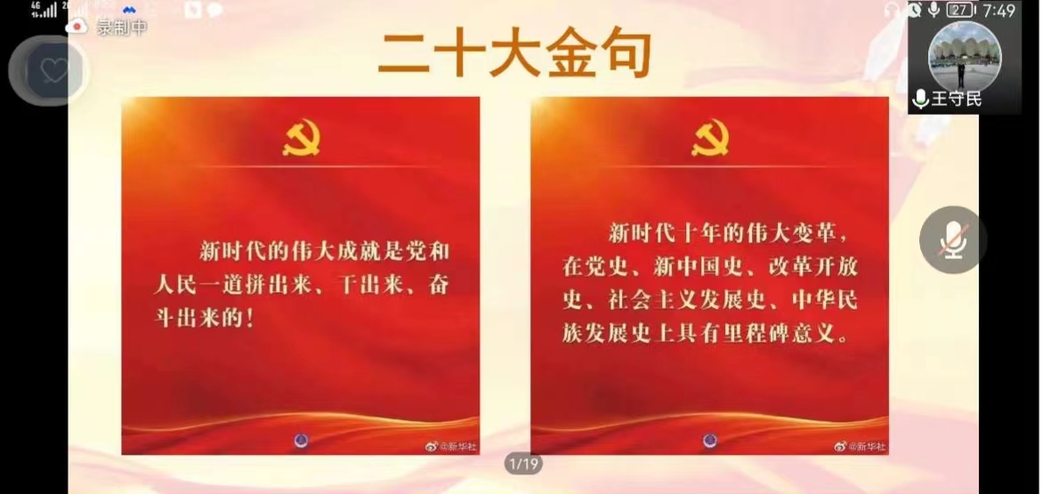 最后,王守民通过结合时事热点,带领全体学员进一步领悟二十大精神内涵,提出青年强,则国家强。年轻一代要坚定不移听党话、跟党走,胸怀理想、苦练本领,把美好年华融入党和国家事业发展中,以强烈的政治责任感、饱满的热情、良好的精神风貌投入到新征程、新时代中。