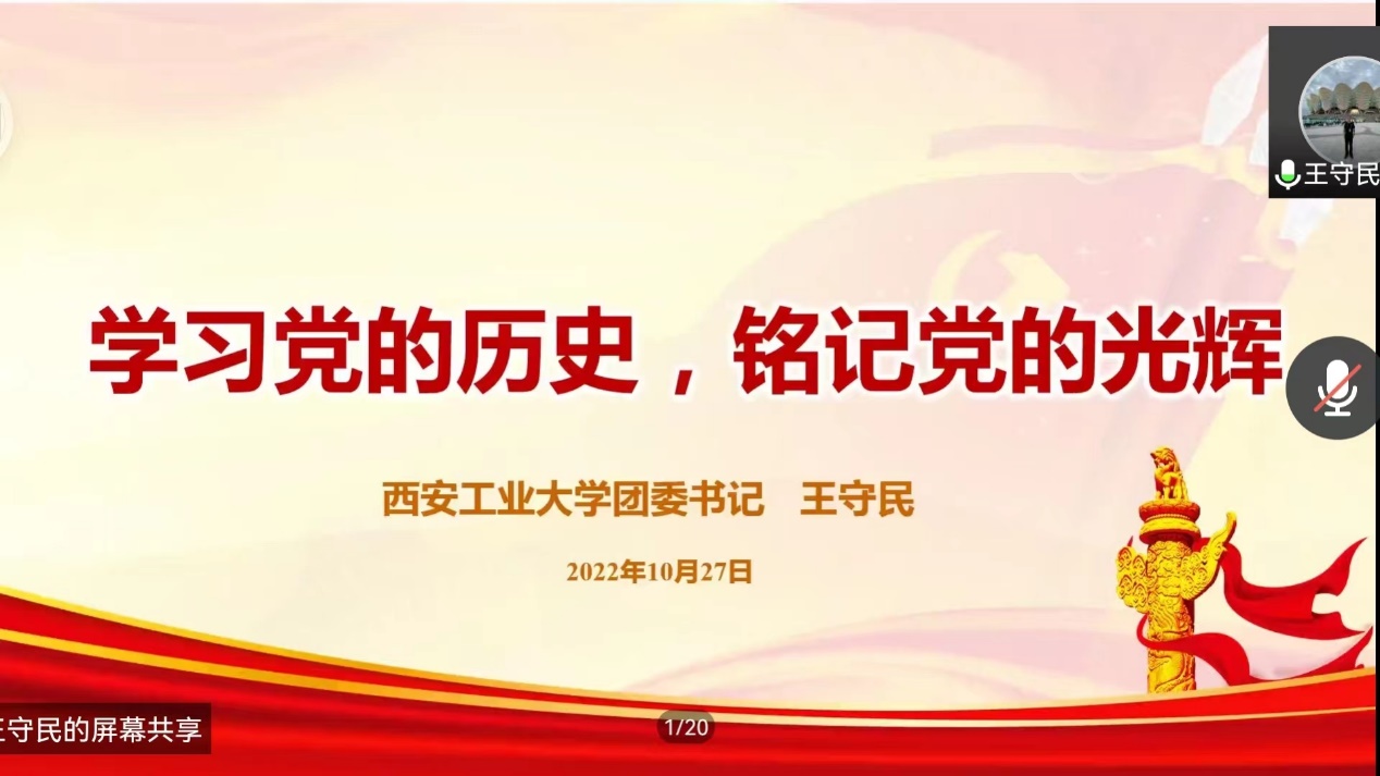 10月27日晚,yl23455永利集团第65期党课培训第一讲“学习党的历史,铭记党的光辉”通过腾讯会议顺利开讲,校团委书记王守民为140余名党课学员进行指导及授课。