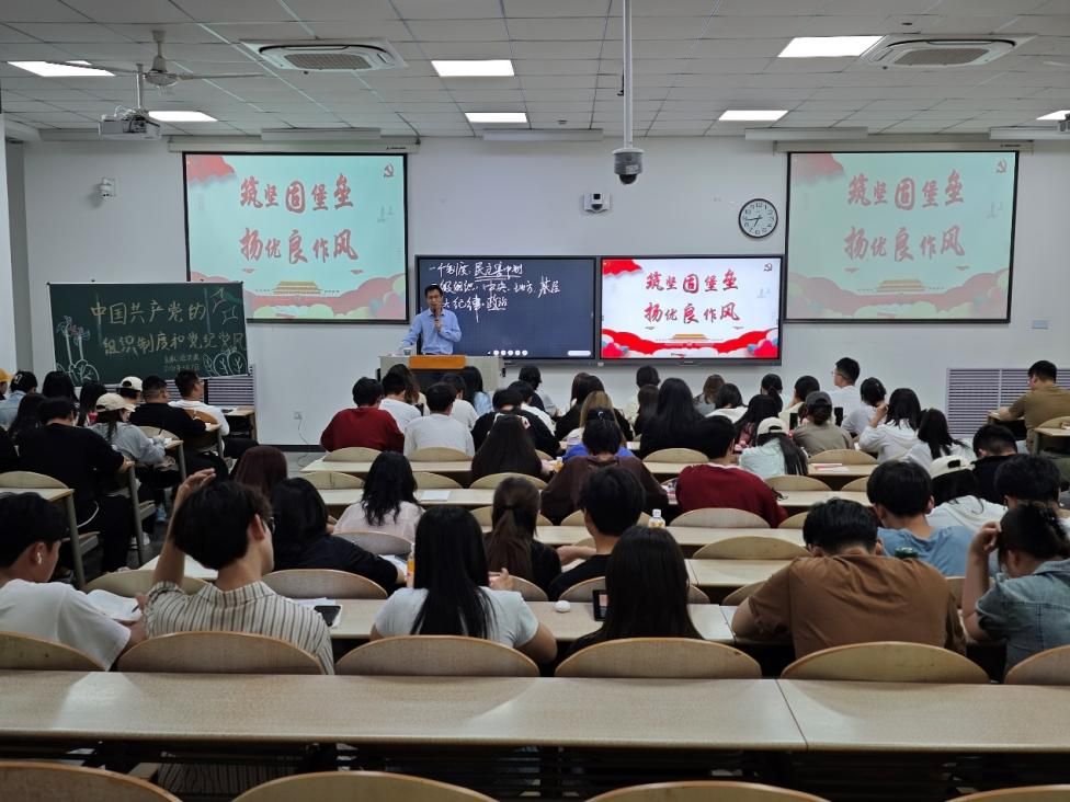 姬洪波老师首先介绍了“一个制度”、“三级组织”、“六大纪律”、“三大作风”的详细内容,接下来从“中国共产党的组织”、“中国共产党的纪律”、“中国共产党的作风”三大方面讲述。他讲道:“党的组织制度和党纪党风不仅是中国共产党在长期革命和建设实践中形成的重要基础,也是保持党的先进性和纯洁性的重要保障。”