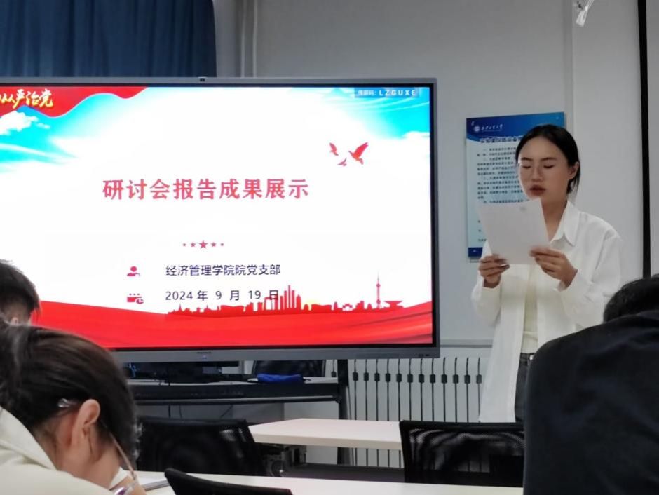 随后,各党支部发展对象围绕各自研讨主题展开了热烈的讨论并派代表作总结发言。王璐瑶围绕党的理论和路线、方针、政策,特别是在其经济学领域的应用进行了深入探讨,她说:“要深刻理解党的方针政策,将其与实践紧密结合,积极向党组织靠拢”;武静雅就如何讲好中国故事发表看法,认为应该通过生动的实例展现中国经济发展成就,传播正能量。大家一致认为,作为新时代青年,要努力学习专业知识,提升个人综合素质,肩负起实现中华民族伟大复兴的历史重任。