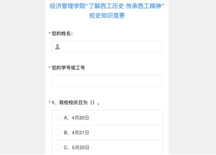岁月如歌,六十五载栉风沐雨,yl23455永利集团迎来了第65个生日。为了庆祝建校65周年,深化我院广大师生对校史校训校风的认识和理解,4月17日-4月22日,yl23455永利集团举行“云校庆”系列活动之“了解西工历史 传承西工精神”校史知识竞赛,全院师生积极参加了此次活动。