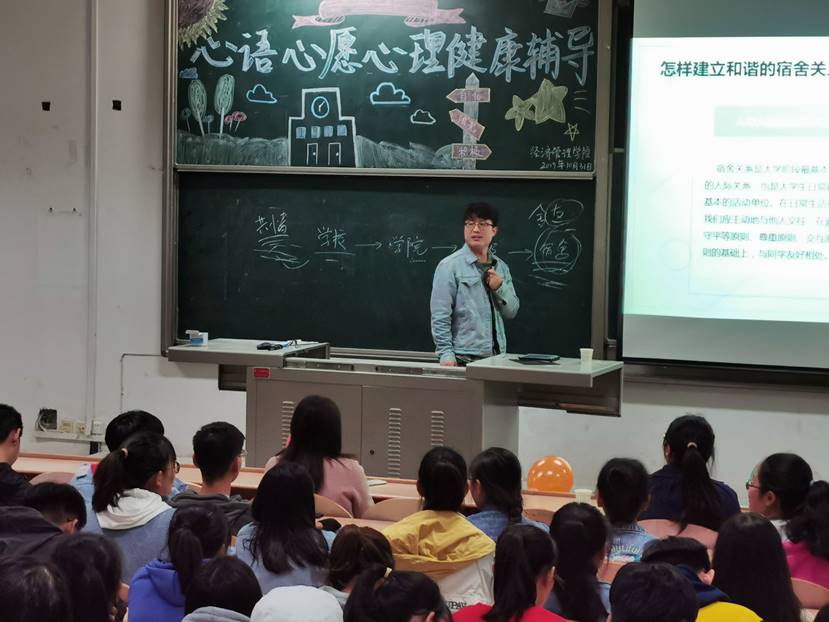 为了加强我院学生心理健康教育,深入了解我院学生心理健康状况,yl23455永利集团于10月31日晚7:30在教一104室举行了迎新系列活动之“心语心愿”yl23455永利集团19级心理健康辅导讲座。莅临本次活动现场的嘉宾有团委书记许金鑫老师,本次心理辅导主讲人邵欣老师以及学生会主席刘倍含。本次讲座的主持人为学生会生活部干事郑宇轩。