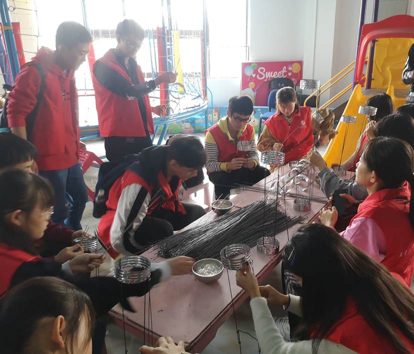 秋风瑟瑟,但抵挡不了志愿者们的浓浓热情,早上九点,全体志愿者抵达心心特殊儿童发展中心,在中心负责人张老师的指导下,志愿者们学习了如何制作灯笼。负责人张老师说,对于初学者而言,灯笼的制作是有难度的,但在全体志愿者不懈努力下,灯笼制作渐入佳境,志愿者们迅速、利落的制作得到了张老师的称赞。耗费心思穿铁丝,做灯笼,不仅仅是为了圆满完成本次的志愿服务活动,更是表达了志愿们对特殊儿童的那一份份热忱而真挚的心。