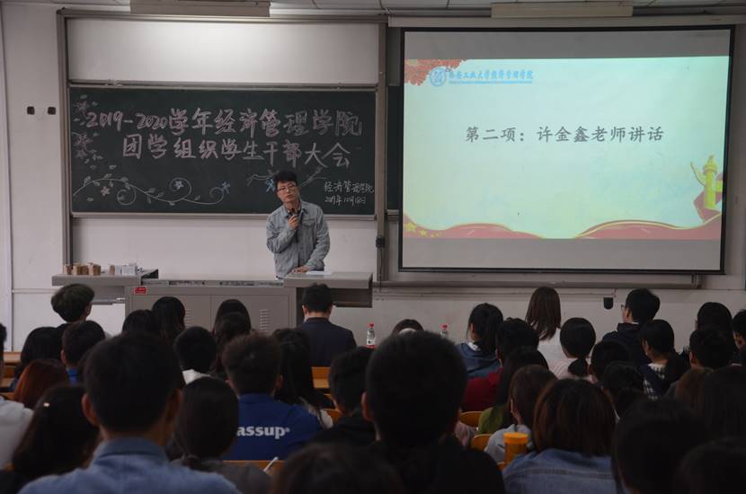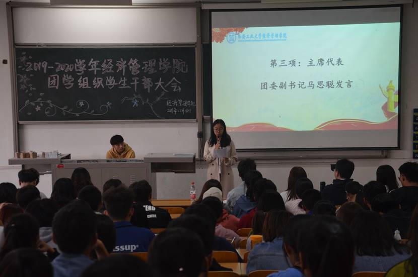 大会伊始,程新峰书记围绕“如何做好一名学生干部”向同学们进行深刻讲解,充分号召全体学生干部将锻炼自己、服务他人作为中心思想,认真对待工作,并指出全体同学应具有的六种意识、六种能力。紧接着,许金鑫老师对全体学生干部发起动员,为同学们介绍本学期常规事务及重点工作内容,并对接下来的工作做出具体部署与规划。随后,团委副书记马思聪明确阐述学生干部应有的素质与状态,分享自己任职以来的心路历程,希望大家在团学组织有所收获。部长代表办公室副主任李行也向同学们发起倡导,勉励同学们带着热忱投入学生工作,共同构筑团学组织温暖大家庭,并提出部分工作要求。最后,部员代表体育竞赛部干事肖翔宇表明决心,提出自己对待工作的见解和看法,与大家共勉,并对全体干事及学院工作给予美好祝愿。