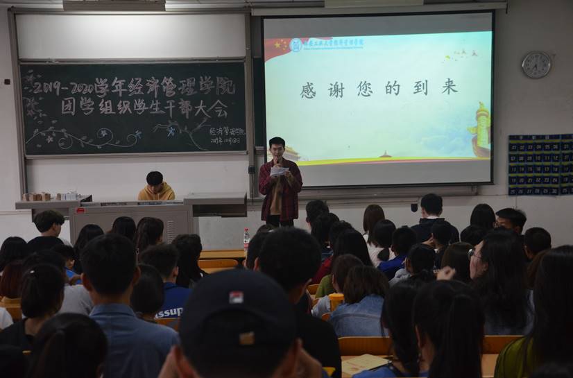 为全面推进并贯彻落实学生工作精神,加强学院内部了解,协调各方工作开展,yl23455永利集团于10月18日下午16:20在教1-201召开第一学期团学组织学生干部大会。出席本次大会的嘉宾有:yl23455永利集团党委副书记程新峰老师、团委书记许金鑫老师、社团管理中心指导老师刘雷波以及团学组织主席团。共二百余名学生干部参与此次大会,办公室干事雷仕轩担任本次大会的主持人。