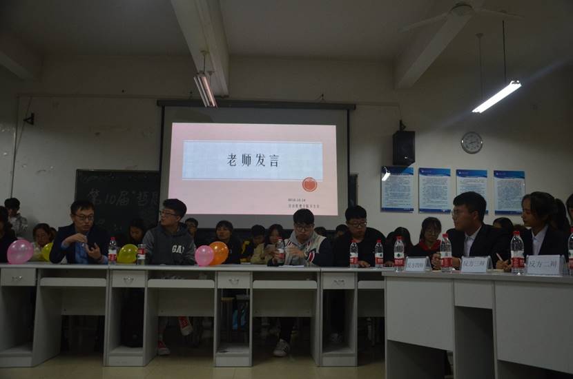 为展现新一代大学生的蓬勃朝气,培养学生辩证看待问题、创新思维的能力,yl23455永利集团于10月14日晚在教5-506举行了“哲思杯”辩论赛的决赛。出席本次比赛的有团委书记许金鑫老师、科协指导老师王轩老师,以及其他学生评委,本次比赛的主持人由学生会干事王传宇担任。