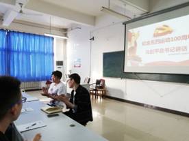 活动伊始,大家进行了“纪念五四运动100周年习近平总书记讲话”的学习。学习过程中,同学们认真观看并详细记录。习近平总书记的讲话使大家斗志昂扬并对此畅谈自己的体会。党员徐靖伟表示:“作为新时代新青年,我们更应承载起历史重担,为了民族复兴的使命而不断奋斗!”预备党员王媛媛表示:“今天发扬五四精神,就要把五四运动倡导的爱国、进步、民主、科学思想同实现中华民族伟大复兴中国梦统一起来,做新时代的追梦人。”最后,王轩老师对此次学习进行了总结,希望同学们传承五四精神,把社会主义核心价值融入到学习和生活中,做一名优秀青年。