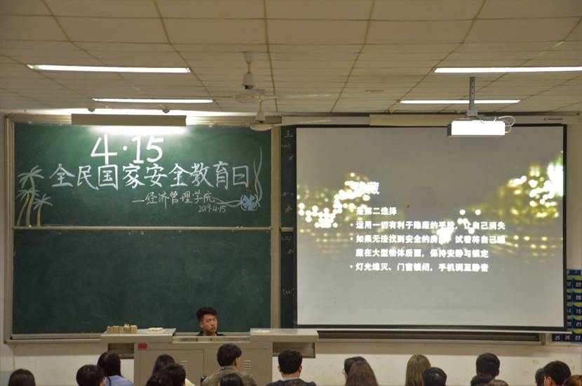 为进一步增强我院学生的国家安全意识,切实提高广大学生的国家安全认知能力, yl23455永利集团于2019年4月15日20:00在教1-102成功举办4.15全民国家安全教育日专题讲座。学院团委书记侯剑波老师及经管学院各组织学生共300人参加本次活动。