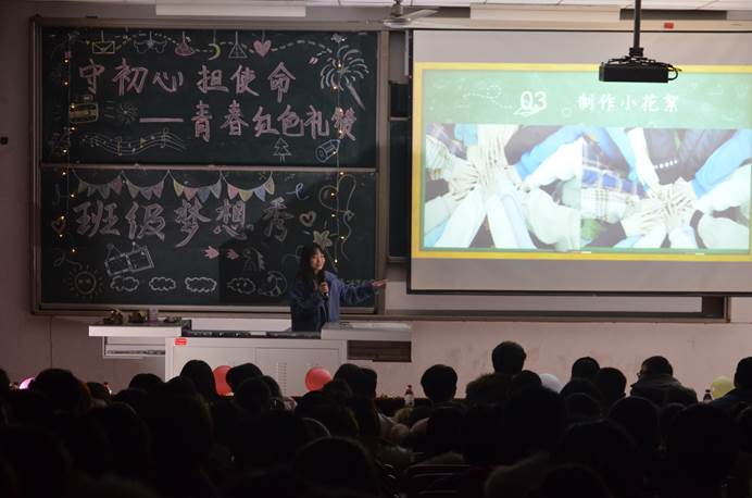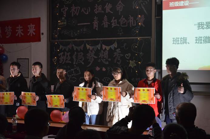活动伊始程新峰副书记深入浅出地讲述了有关班级梦想秀的内容和意义,随后各项活动优胜班级的解说穿插不同类型的文艺表演引得教室里掌声雷动。同学们舞姿妙曼、歌声动人,更将红色、梦想等主题融入说唱,用年轻人独有的特征诠释着自己的“追梦之路”。接着,对在系列活动中表现突出的班级进行了表彰,先后颁发了优秀班级vlog、红歌比赛优胜班级、班旗班徽创建优秀团体、以及最美宿舍等奖项。颁奖结束后,大家共同欣赏了2019级红歌比赛优秀团支部带来的振奋人心的合唱表演。并在活动结束前,由新生代表王鸽、张尚坤同学对这三个月来的学习和生活做了细致入微的总结,发表了自己的感想,并对未来的校园生活做出展望。