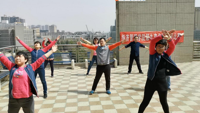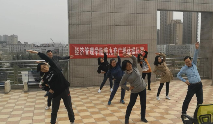 学院的比赛安排通知一下发,老师们摩拳擦掌,各自进行视频学习;工会小组长积极组织统一合练。在比赛视频录制现场,不论是刚入校的新教师,还是资深老教授;不论是普通教师,还是学院领导,大家都精神抖擞,拿出最好的表现。虽然偶尔有动作失误,但老师们积极的心态,饱满的激情,体现出经管学院的精神面貌。短短四、五分钟的广播操让大家身体活动起来,精神放松下来,干劲鼓舞起来!