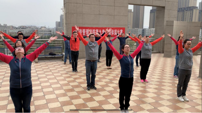阳春三月,春风扑面。根据校工会“关于开展教职工广播体操竞演的通知”精神,yl23455永利集团在3月19日~25日进行了第九套广播体操比赛。比赛以工会小组为单位,依据各小组选定时间,进行比赛视频录制。邀请学院体育部学生评委进行打分,最后办公室工会小组荣获一等奖,管理系工会小组、人力系工会小组分获二、三等奖。并选拔出优秀队员15名,参加我校2019年田径运动会开幕式表演。