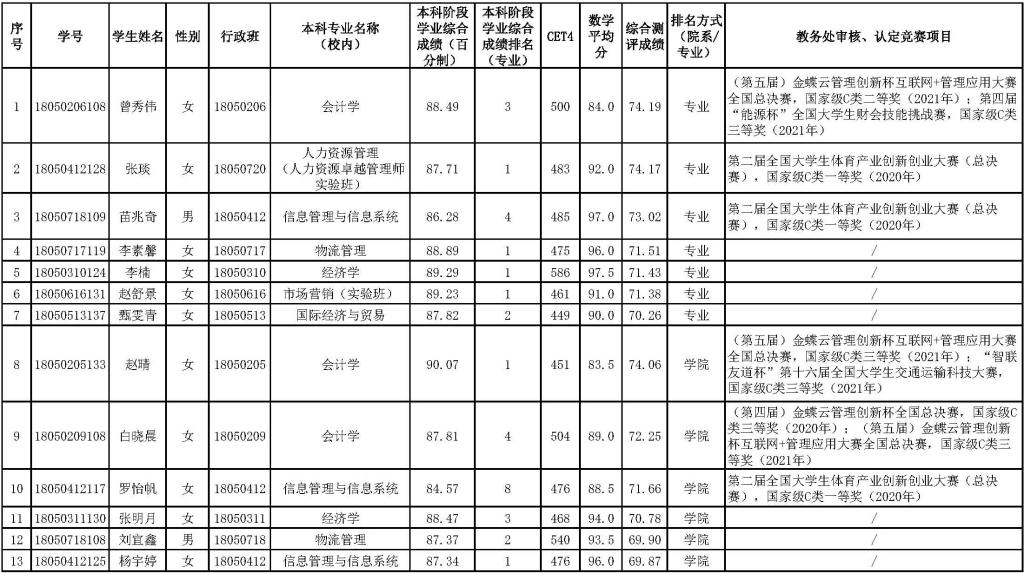 根据学校《yl23455永利集团推荐(接收)优秀应届本科毕业生免试攻读研究生实施办法(试行)》和《关于做好2022年yl23455永利集团推荐优秀应届本科毕业生免试攻读研究生工作的通知》文件精神,按照《2022年yl23455永利集团推荐应届本科毕业生免试攻读硕士学位实施细则》,经符合推荐基本条件的应届本科毕业生自愿申报,相关职能处室审核申请材料,确定以下13名同学为yl23455永利集团2022年拟推荐优秀应届本科毕业生免试攻读硕士研究生候选人选,现将名单公示如下: