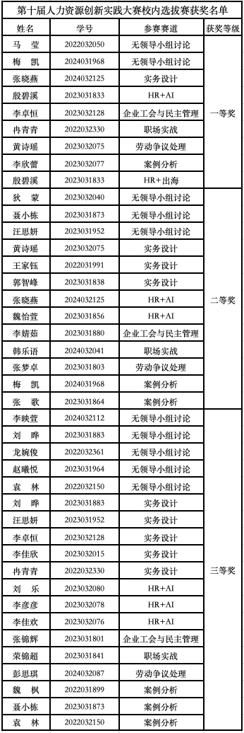 本次校赛选拔赛主要由“职场实战”、“企业工会与民主管理”、“案例分析”、“实务设计”、“劳动争议处理”、“无领导小组讨论”、“HR+AI”、“HR+出海”8个模块组成,分别在六个教室进行。具体安排如下表所示: