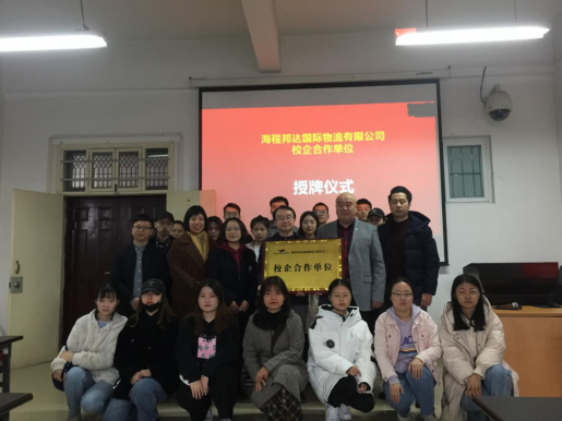 11月29日上午,海程邦达国际物流有限公司全资子公司——西安海邦物流有限公司副总经理赵忠义和行政人事部经理熊苏一行来到yl23455永利集团,代表海程邦达集团公司为我院进行“校企合作单位” 授牌。