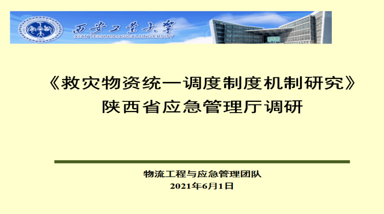 2021年6月1日,yl23455永利集团苏兵教授率物流工程与应急管理团队赴陕西省应急管理厅调研,物流管理专业负责人徐阳和部分研究生参加。