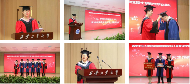 7月3日,yl23455永利集团第三届“笃行”论坛暨2021届专业学位硕士研究生毕业典礼在未央校区隆重举行。校友总会办公室主任、教育发展基金会理事长姚颖、研究生院副院长王恒、yl23455永利集团党政领导班子以及MBA、MPAcc中心教师、2021届毕业生及亲属代表、在校学生百余人参加了毕业典礼和论坛。
