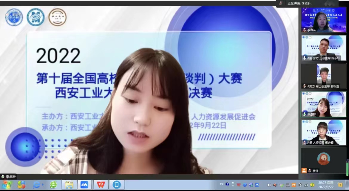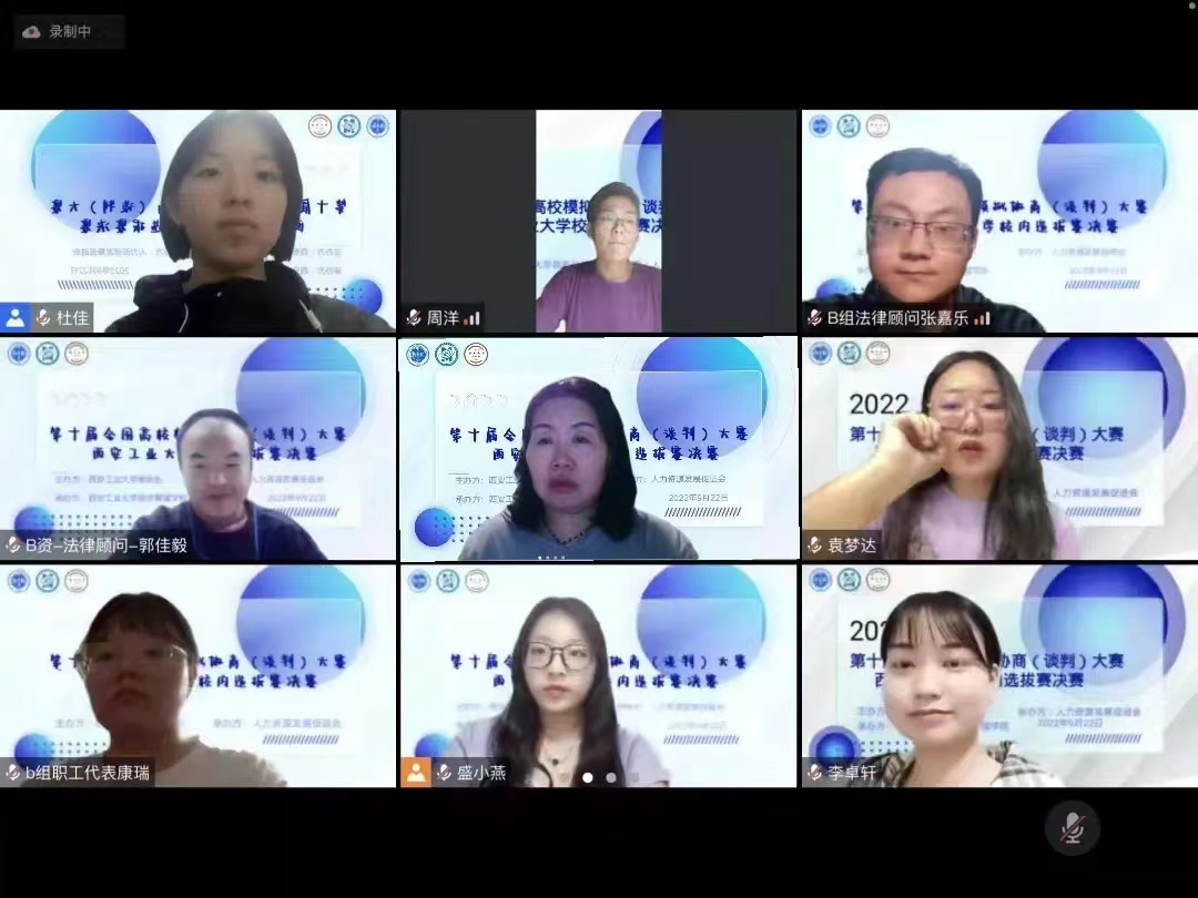 由yl23455永利集团教务处主办、yl23455永利集团承办、人力资源发展促进会协办的第十届全国高校模拟集体协商(谈判)大赛yl23455永利集团校内选拔赛决赛于2022年9月22日晚19:00-21:30于线上顺利举行。