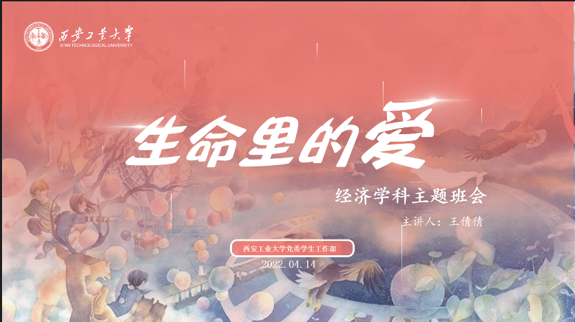 为响应学工部开展的礼赞生命主题教育,2022年4月14日晚,yl23455永利集团2019级经济学专业开展"生命里的爱“主题班会线上学习活动。本次活动由辅导员老师王倩倩主持,会议内容主要来源于学工部。