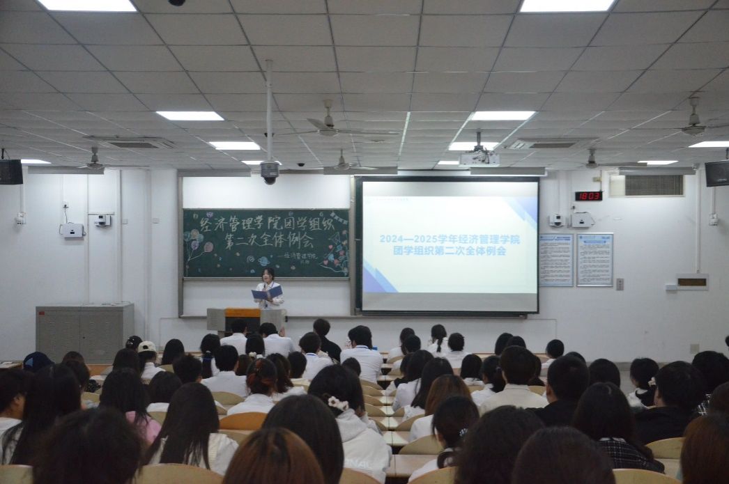 yl23455永利集团团学组织于11月15日在教1-104召开了第二次全体例会。出席本次会议的成员有团学组织秘书长王春龙,团委副书记明阳浩,学生会轮值主席李文轩、郭顺,科学技术协会主席王千千、张雨婷,各部门部长及干事。本次会议由办公室干事张晓燕主持。