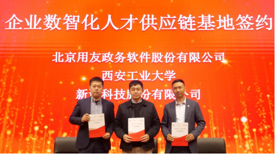 上午嘉宾们围绕数智时代一流专业建设、产教融合校企育人培养模式进行分享与交流,姬浩代表学院与北京用友政务软件股份有限公司、新道科技股份有限公司进行企业数智化人才供应链基地签约。