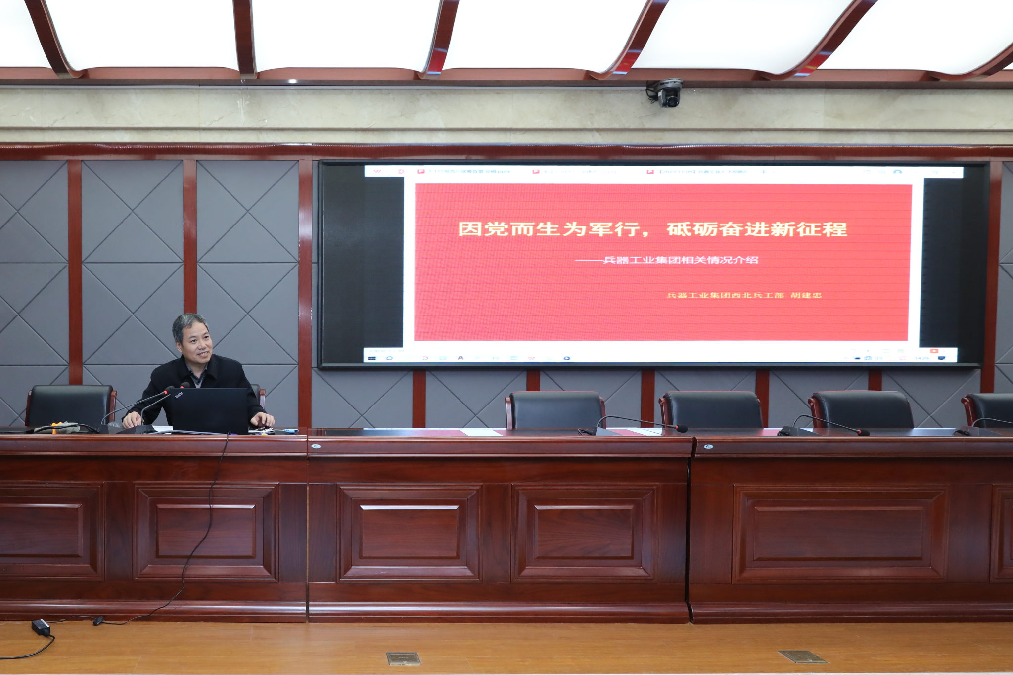 胡建忠以“因党而生为军行,砥砺奋进新征程”为题,回顾了中国兵器工业集团90年的奋斗历程,介绍兵器工业集团的愿景目标、发展规划、保障措施等问题。