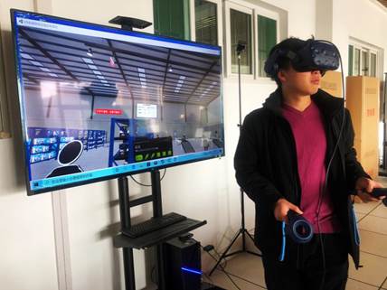 物流管理虚拟现实(VR)实验室使用面积180平方米,配有电脑73台,服务器1台,VR头戴显示设备(PRO 2.0)4套,65寸4K高清显示终端4套,综合第三方物流综合实训系统1套、供应链管理教学系统1套、智能仓储VR实践教学系统4套,能同时容纳73人同时进行实训教学。智能仓储VR实践教学系统以主流电子商务公司仓库为蓝本设计,仿真度高达90%。学生能够以交互的方式模拟仓库各个岗位进行实操训练,熟悉每个岗位的具体实践操作,认知并掌握仓库常用装备,如自动化立体库、自动化分拣线、存储货架、笼车、输送机等,通过仓库岗位实操进而掌握仓储运营流程。