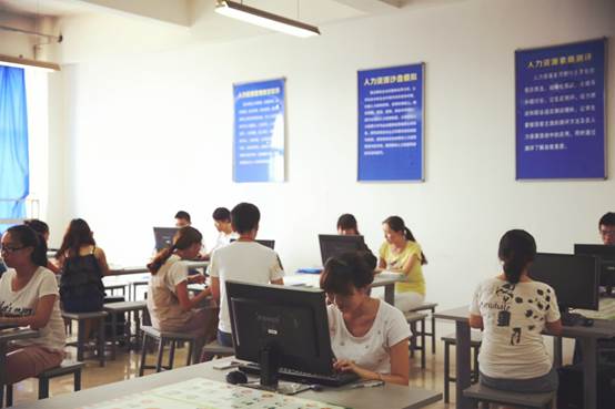 人力资源管理实验室使用面积为90平方米,设有人力资源管理沙盘模拟训练与模拟企业HRM系统运行中心,能够同时容纳60人进行实验。实验室主要承担人力资源管理招聘模拟、人力资源素质测评、培训理论与实务训练、绩效管理反馈、薪酬设计与管理研讨、管理沟通等人力资源管理专业核心课程的实践教学任务。通过各种专业素质实验和训练,实现人力资源管理专业学生专业素养的提升。